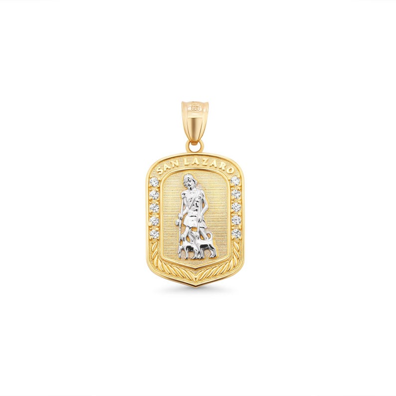 14K Yellow Gold San Lázaro Pendant – Two-Tone Religious Medallion With Cubic Zirconia