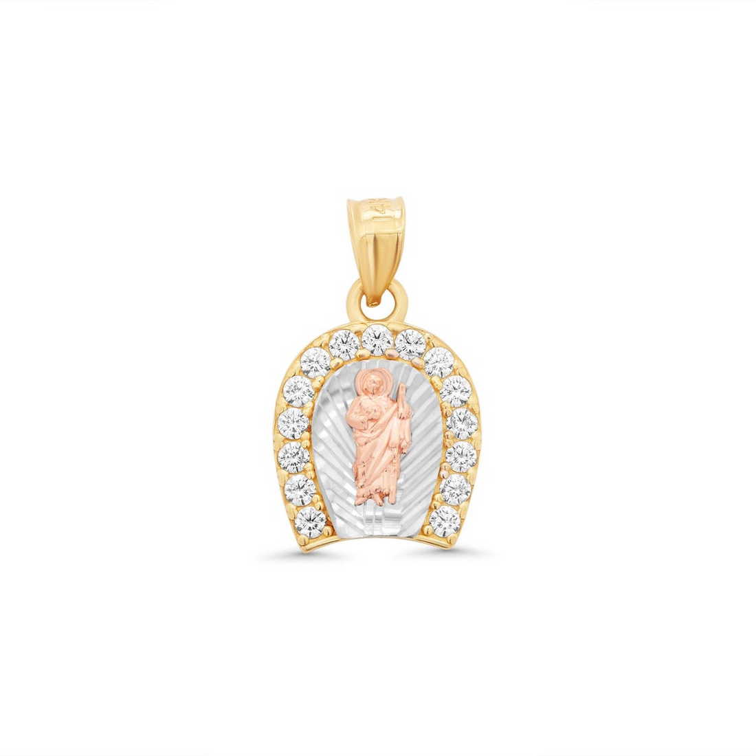 14K Tri Color Gold Religious Pendant – Saint Jude with Cubic Zirconia Stones