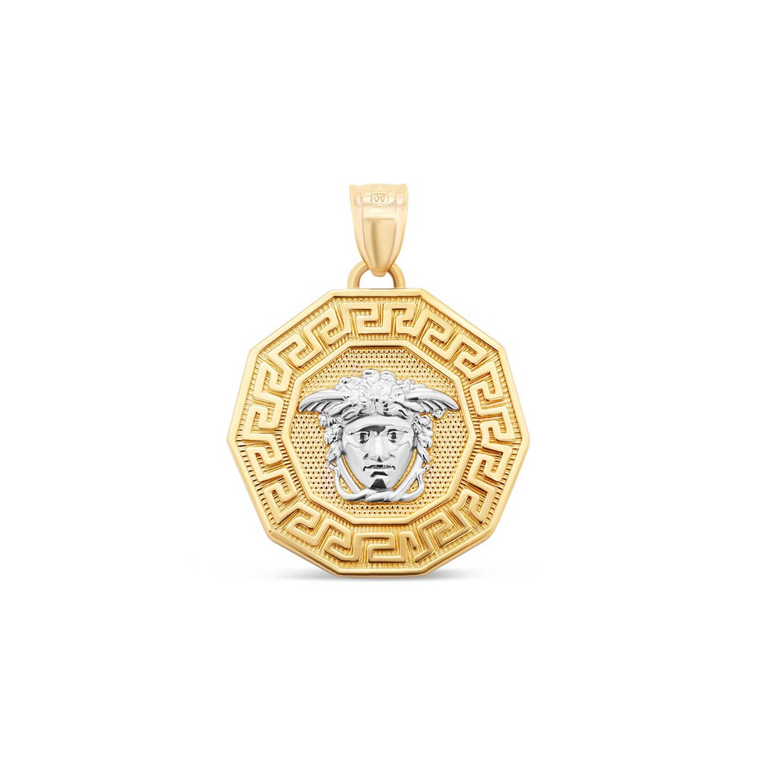 14K Yellow Gold Medusa Medallion Pendant-Two Tone