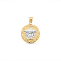 14K Yellow Gold Medusa Medallion with Nugget Style Border-Two Tone