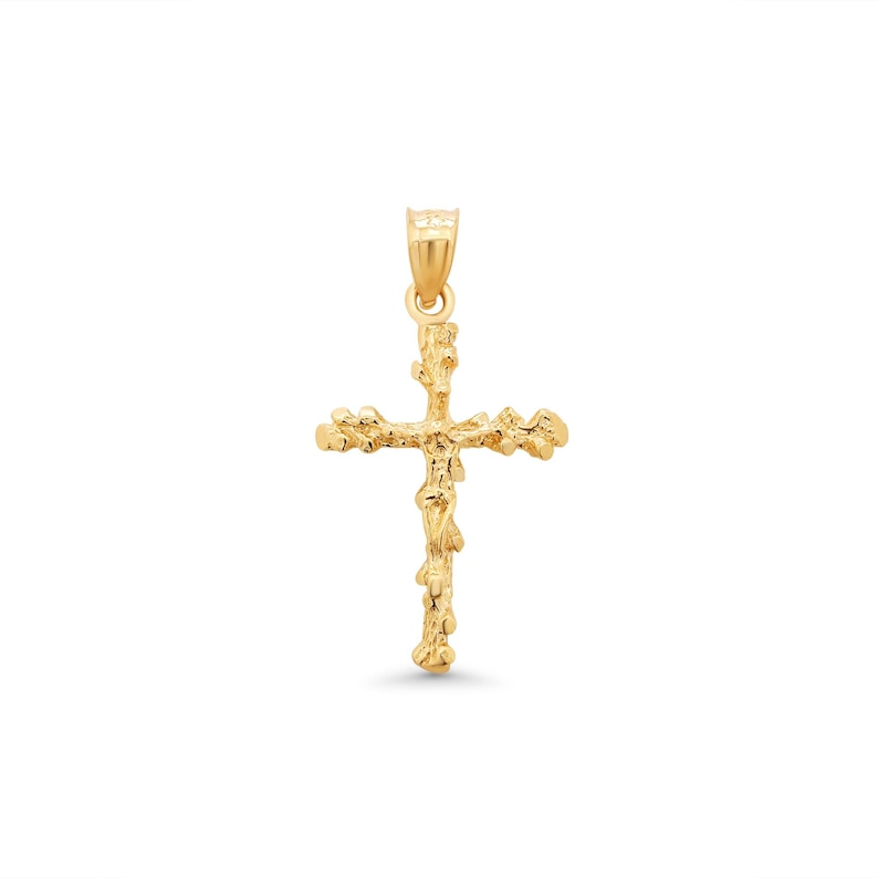 14K Yellow Gold Nugget-Style Crucifix Pendant